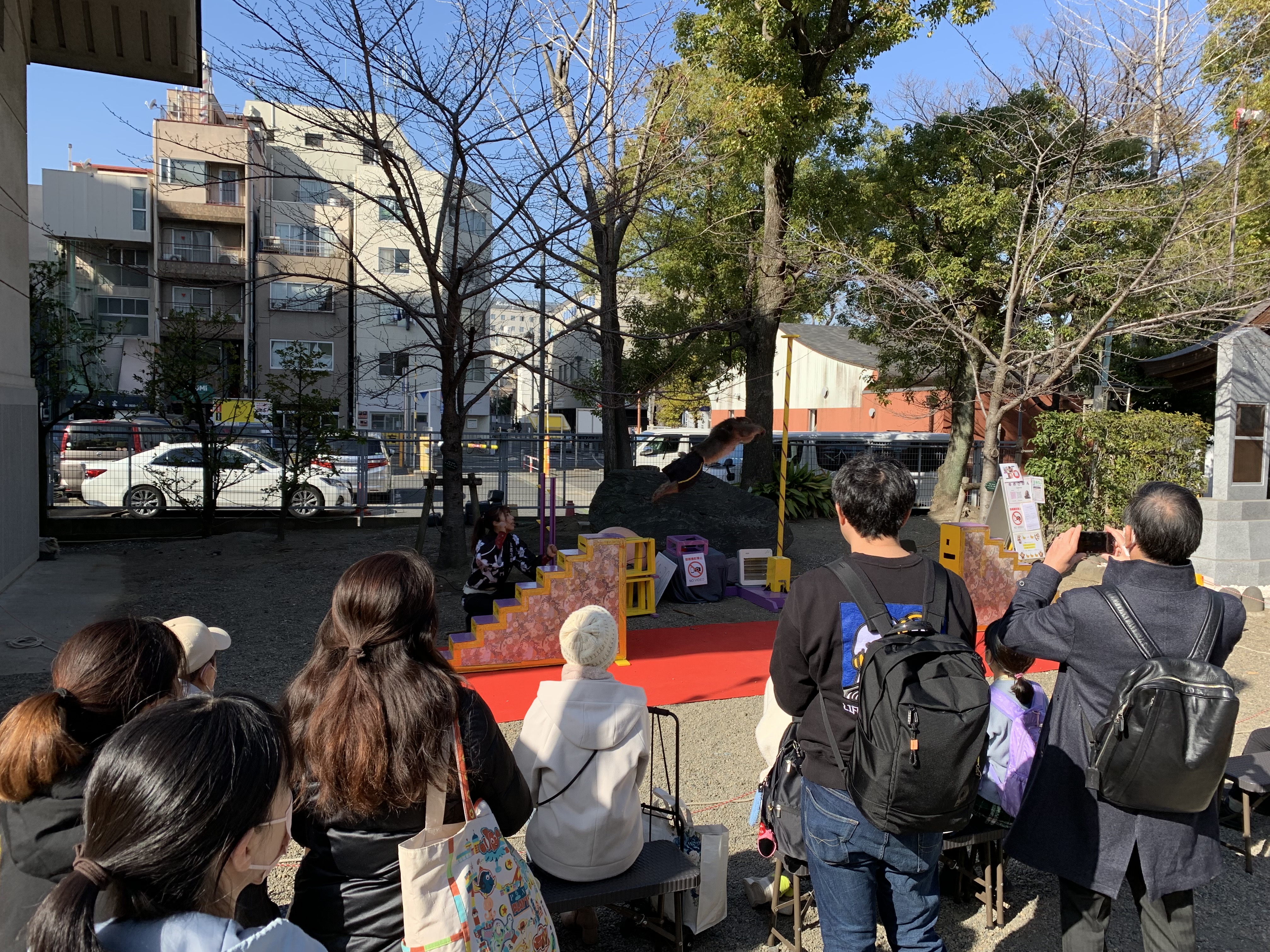 - 境内で猿回しやってました!お猿さん長距離ジャンプに挑戦・・・