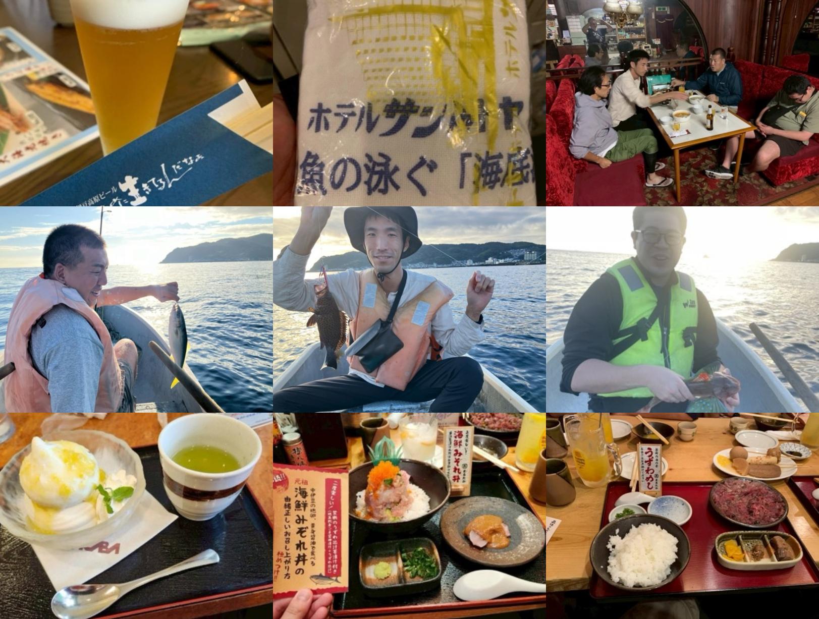 - 9/21〜23の2泊3日で、有志で伊豆旅行へ行って来ました。釣り・海と山の織りなす景色・海の幸・飲み・温泉と、とても楽しかったです。