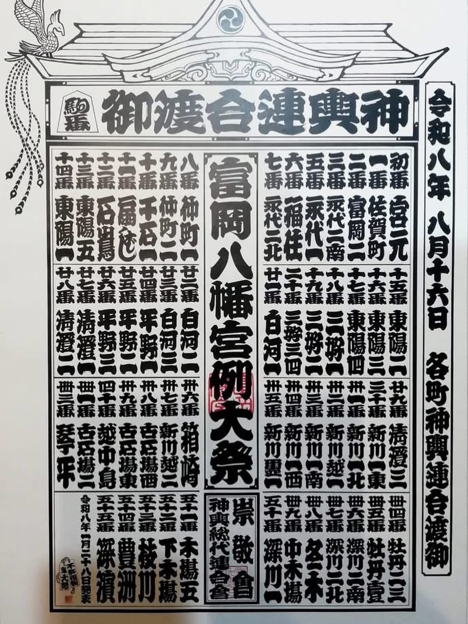 本年は8月16日(日)に行われます。私たちの町会、富一睦は宮元として先頭で神輿を巡行することになりました。 なお、詳細につきましては、追ってお知らせいたします。